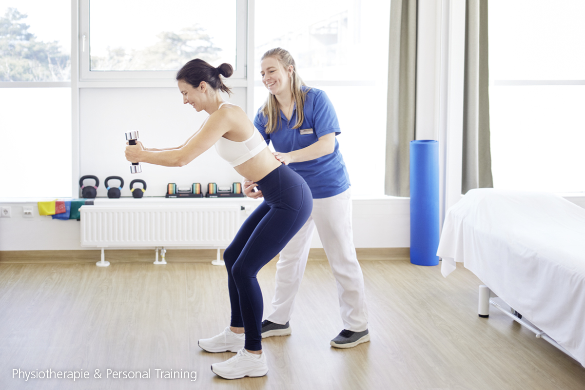 Wir erstellen für Sie ein gezieltes, maßgeschneidertes Übungsprogramm und Training. Dieses wird immer von medizinischem Fachpersonal begleitet, das Ihnen zeigt, wie Sie trotz möglicher Einschränkungen trainieren können. Ein gezieltes Trainingsprogramm kann bei fast allen gesundheitlichen Beschwerden fester Teil der Behandlung sein, bei Funktionseinschränkungen helfen, die Lebensqualität steigern, Stress reduzieren – und soll Spaß machen. Welche Form der Bewegung, in welcher Häufigkeit und in welcher Intensität für Sie passend ist, klären wir mit Ihnen im Rahmen der Therapie ab – damit Sie Ihre Ziele erreichen. Zusätzlich bieten wir auch Sportphsyiotherapie und Personal Training an.